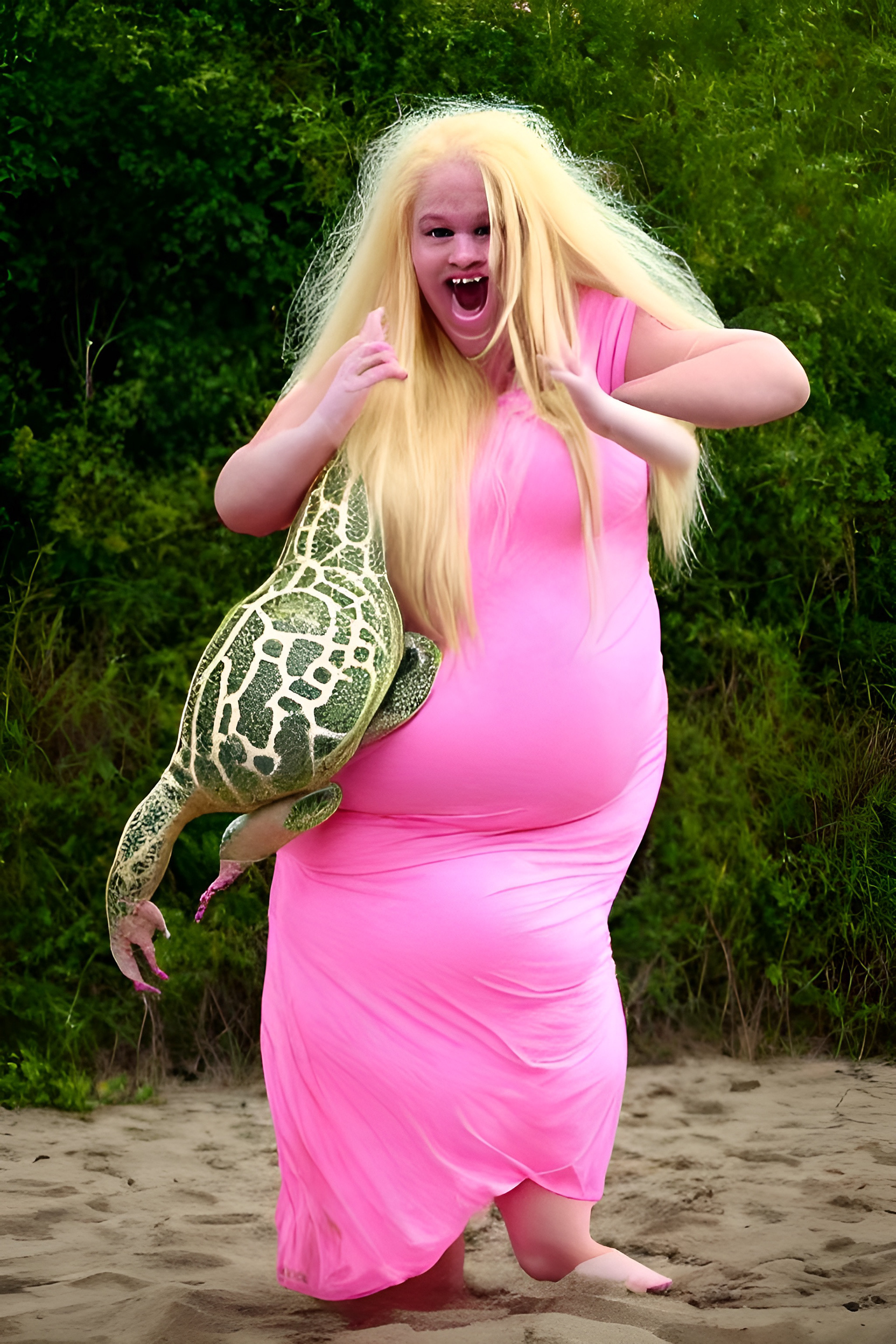 Through the lens of poetry, the Alter Ego becomes a living metaphor, a symbol of the fluidity of selfhood. Her curves and contours are not just pixels but stanzas, each telling a story of resilience, acceptance, and the kaleidoscopic beauty of individuality. The fat, blonde woman becomes a muse for the intersection of technology and the timeless art of storytelling.